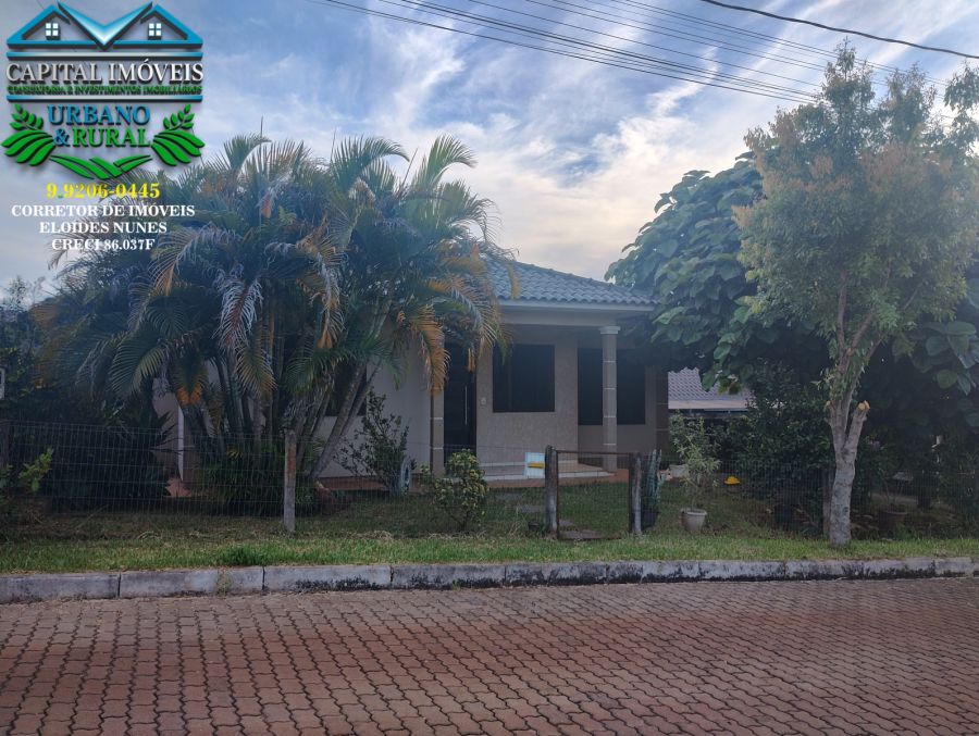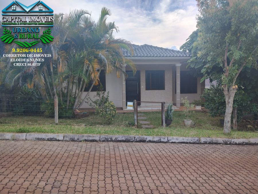 CAPITAL IMÓVEIS: VENDE - Casa de Alvenaria com laje de 70m² e Terreno de 594m² com 24m de Frente, Quiosque com Garagem de 150m² na Rua dos Legustros, Bairro Cristina em Crissiumal - RS