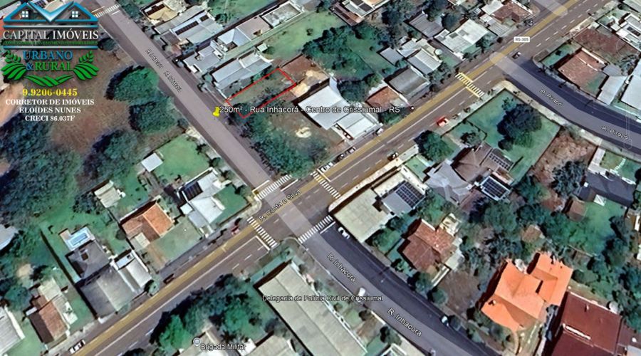 CAPITAL IMÓVEIS: VENDE - Lote Urbano - Terreno de 250m² na Rua Inhacorá, próximo da Delegacia de Polícia e Brigada Militar, centro de Crissiumal - RS